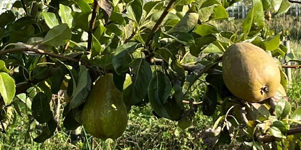 De appels hebben het dit jaar minder goed gedaan, aangezien we daar allerlei beestjes in hadden. De peren daarentegen deden het prima en zijn rijp om te oogsten.